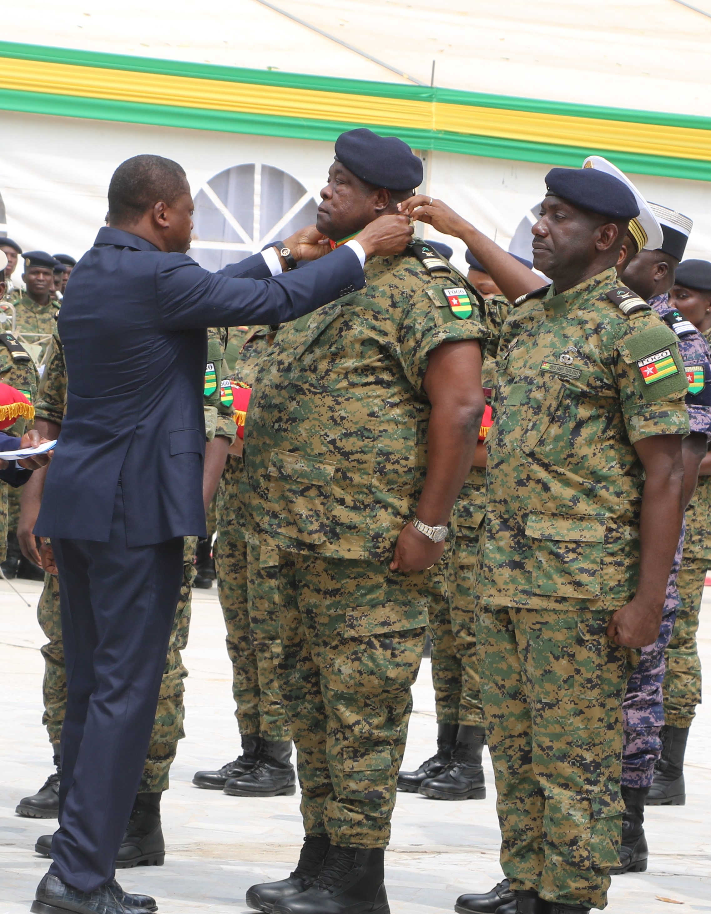 Cet événement s’inscrit dans le cadre de la commémoration du 32e anniversaire de l’attaque terroriste de mars 1993 ayant visé le Père de la Nation.  Avant l’arrivée du Chef de l’État, plusieurs militaires ont été décorés par le Chef d’État-Major Général, assisté du Général de brigade, Inspecteur des Forces Armées. Les récipiendaires ont été élevés aux grades d’Officier et de Chevalier de l’Ordre du Mono, ainsi qu’à l’Ordre National du Mérite.