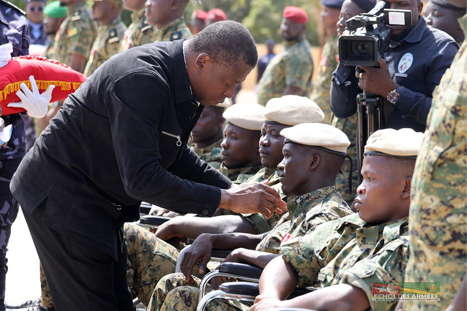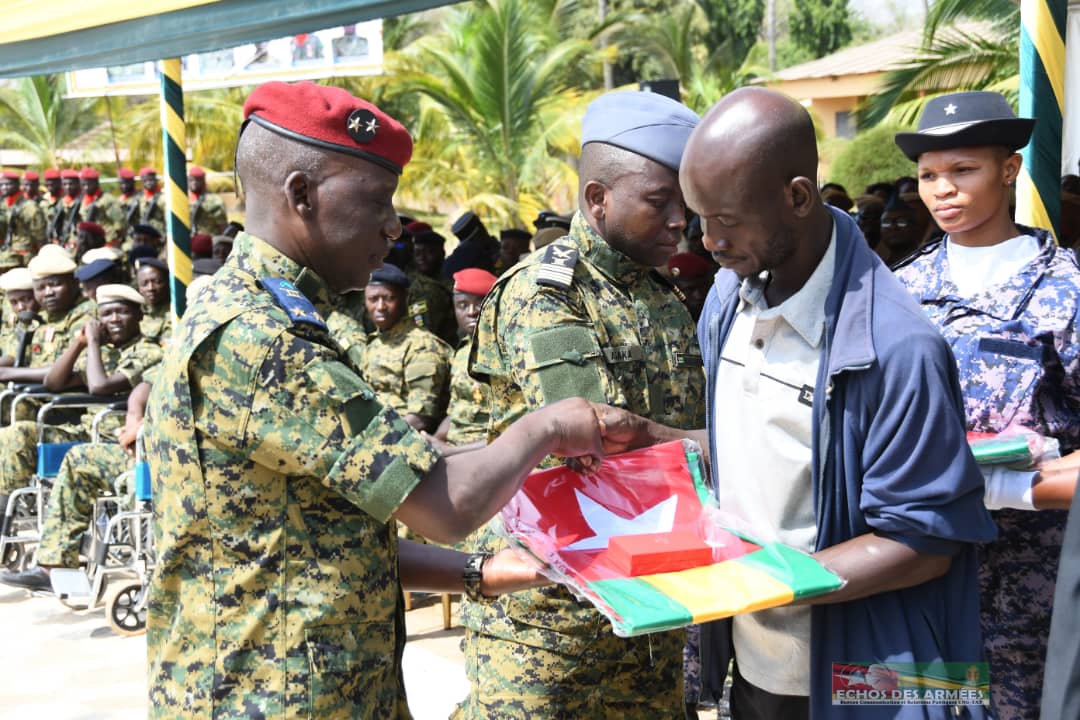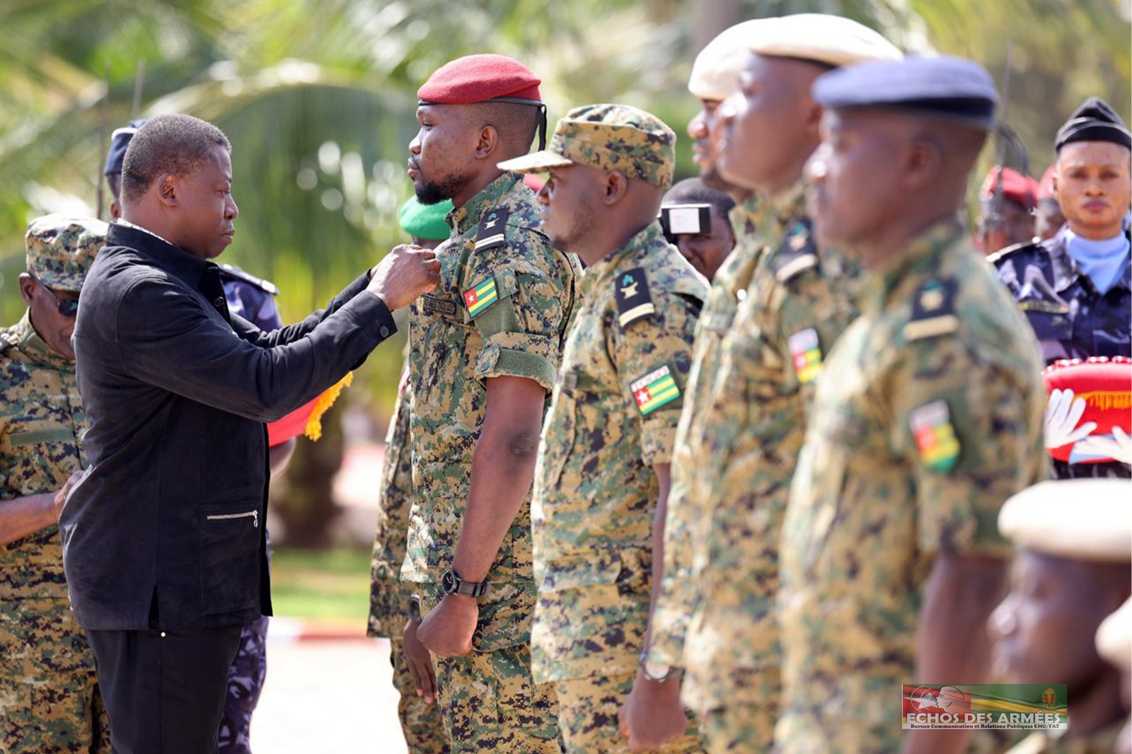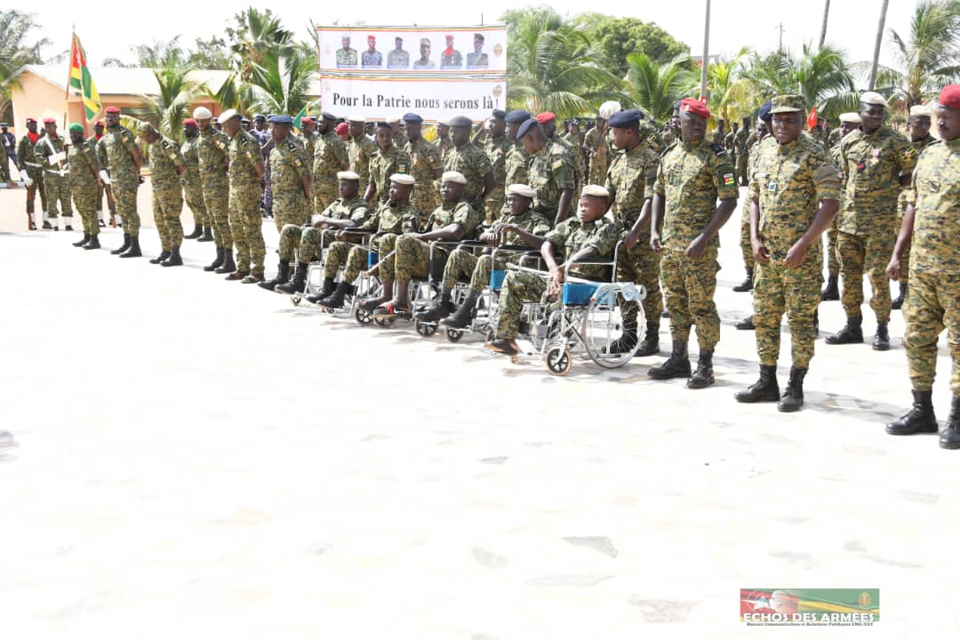 Juste après cette séquence solennelle de décoration, le Chef d’Etat-Major Général des Forces Armées Togolaises a remis symboliquement le drapeau national et les médailles aux familles des victimes, en reconnaissance du service rendu à la Nation. La cérémonie s’est achevée par un défilé militaire des différentes unités.