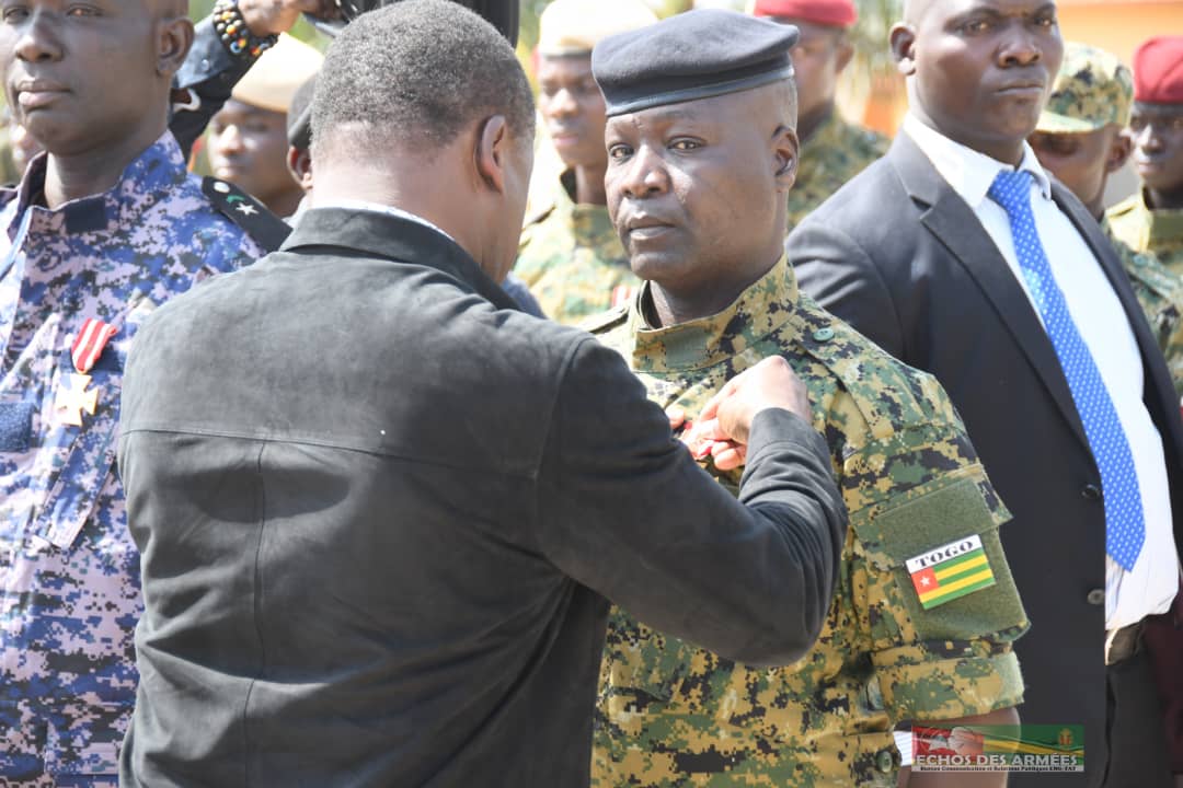 Au nom de la Nation, le Chef d’Etat-Major Général des Forces Armées Togolaises, le Général de Brigade Dimini Allaharé, a salué la bravoure des militaires blessés et des auteurs d’actes de courage, auxquels il a décerné la Croix de vaillance avec étoile en bronze.