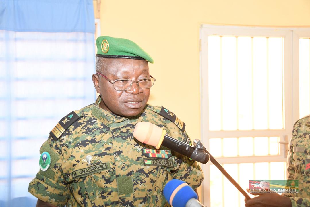 Prenant la parole à son tour, le Colonel GNASSINGBE Malibada a rendu hommage au Chef Suprême des Armées pour l’importance accordée à la formation du personnel. Il a félicité l’encadrement de l’EFOFAT pour les dispositions pédagogiques, matérielles et techniques ayant permis le bon déroulement de la formation, avant d’inviter les nouveaux Commandants de Compagnie à faire preuve de rigueur, de loyauté et de dévouement dans leurs futures fonctions.