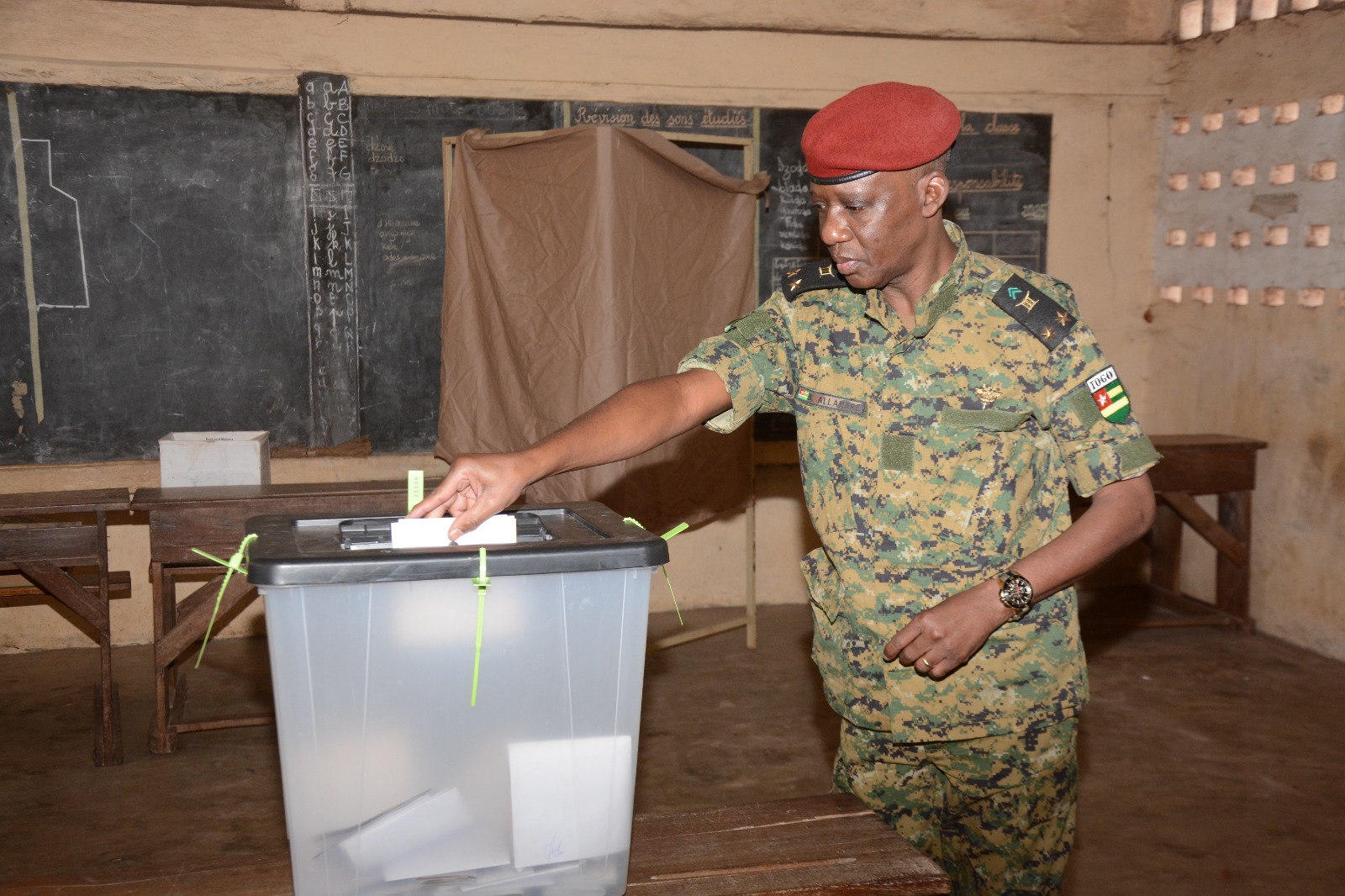 À Lomé, l’école primaire du camp Général Gnassingbé Eyadema a notamment servi de cadre au vote des autorités militaires, parmi lesquelles le Général de Brigade ALLAHARE Dimini, Chef d’état- major général des Forces armées togolaises, venu accomplir son devoir citoyen. D’autres centres de vote de la capitale ont également accueilli les membres des forces de défense et de sécurité pour cette opération électorale.
